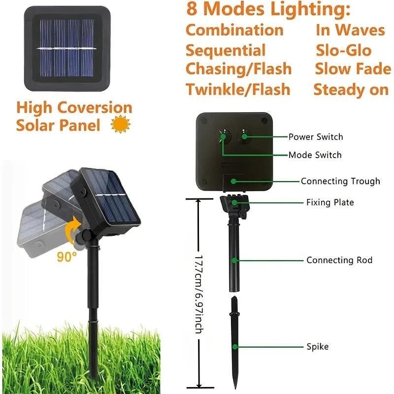 Simply place the solar panel in the sun, switch it on, and enjoy enchanting lights in your yard, balcony, or Christmas tree.