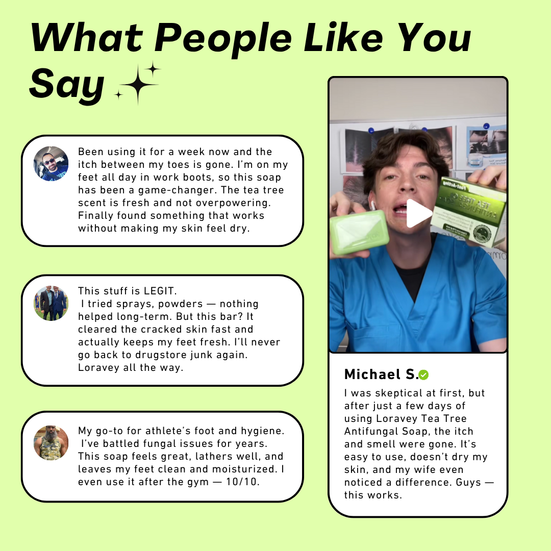 It's easy to see why thousands of chronic athlete's foot sufferers choose our Tea Tree Oil Soap over temporary treatments that fail. Every bar is formulated to kill fungus completely and prevent the reinfections that keep you trapped in shame — giving you the confidence to live normally again.