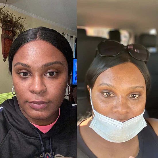 “I am in love with your soap. here are my before and after and still working on it .. i will get back to you when I reach to my skin goals lol 😉”