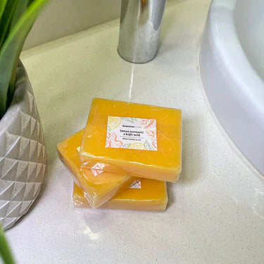 Ourlemon turmeric & kojic acid brightening soappromotes brighter, more even-toned, healthier skin with its unique blend of active components.