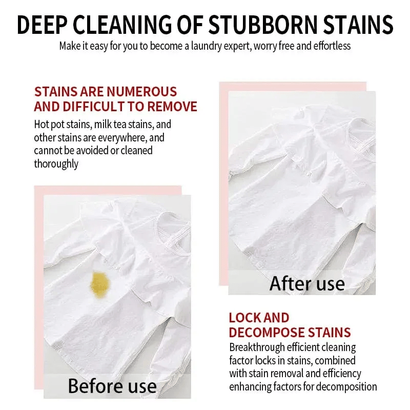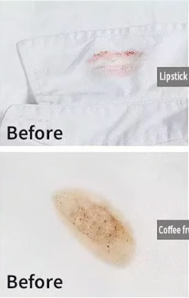Easily removes: yellowed collars, sweat marks, oil stains, makeup smudges, wine spills, food drips, and daily dirt.